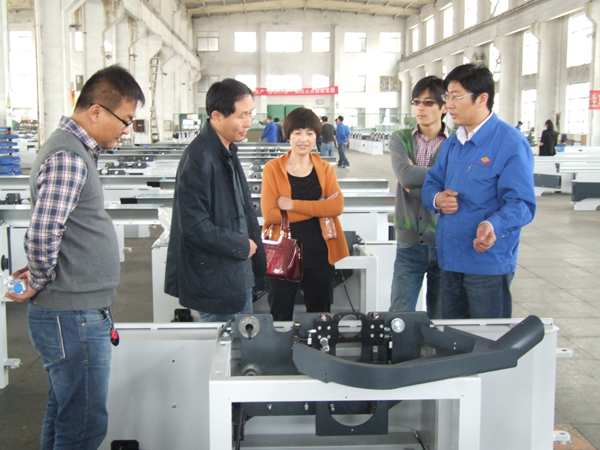 為了更好的展示工友產(chǎn)品,公司對原有的產(chǎn)品展示大廳進行了改造。新的展示大廳不僅按照產(chǎn)品類型劃分展示區(qū)域,還專門設(shè)立了精品區(qū),擺放目前最新的拳頭產(chǎn)品,以便于客戶更加直觀的了解產(chǎn)品。與會經(jīng)銷商首先參觀了產(chǎn)品展示大廳,重點駐足在精品展示區(qū),調(diào)試人員現(xiàn)場演示設(shè)備,技術(shù)研發(fā)人員現(xiàn)場為客戶講解新產(chǎn)品的功能特點、性能參數(shù)、產(chǎn)品的主要優(yōu)勢、賣點等。經(jīng)銷商們認真傾聽并不時提出疑問,研發(fā)人員、質(zhì)檢、銷售業(yè)務(wù)等人員耐心解釋。在參觀展示廳之后,經(jīng)銷商們在木機事業(yè)部經(jīng)理董品洲的陪同下,參觀了部分生產(chǎn)車間,讓經(jīng)銷商們近距離的了解產(chǎn)品的生產(chǎn)過程,感受工友精益求精的制作理念。